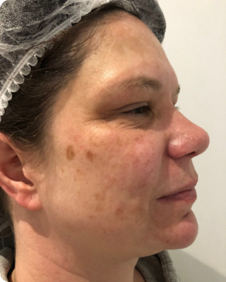 She was using the ZO fundamental five to prepare the skin, before we started her on the ZO Skin Brightening Programme & Texture Kit. These photos were taken only six weeks apart, after we started ZO brightening treatments to purge and blend the pigment. The key products in this transformation were Brightalive, Retinol Skin Brightener and Wrinkle & Texture Repair.