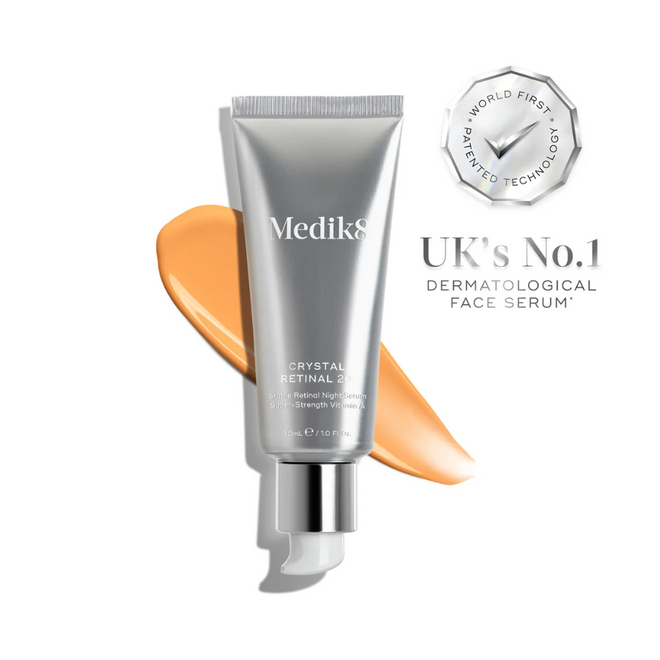 Medik8 Crystal Retinal 20 is a night serum with 0.2% retinal, designed for advanced vitamin A users. It helps reduce fine lines, refine skin texture, even skin tone, and improve firmness, working up to 11 times faster than standard retinol.