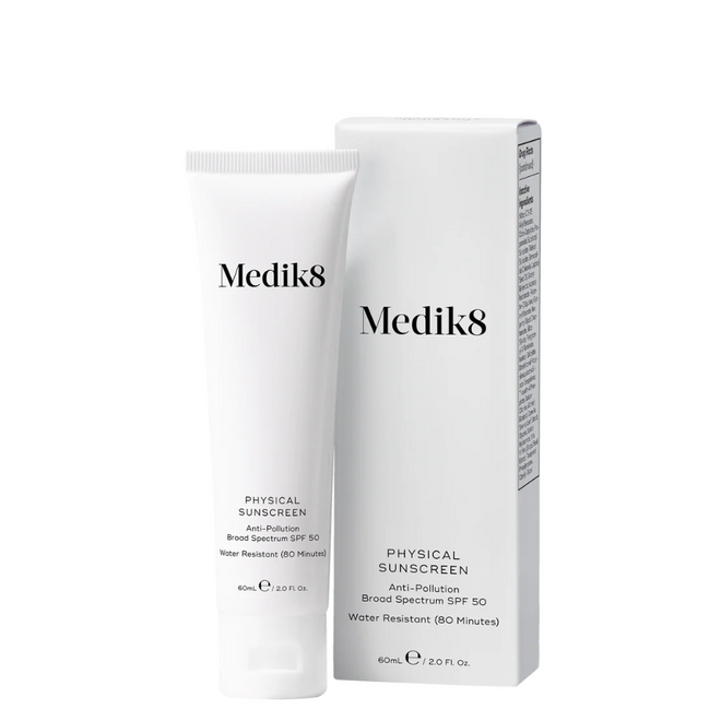 Medik8 Physical Sunscreen SPF 50 is a nourishing, non-nano physical sunscreen that provides ultra-high protection against UVA and UVB rays while supporting the skin barrier.