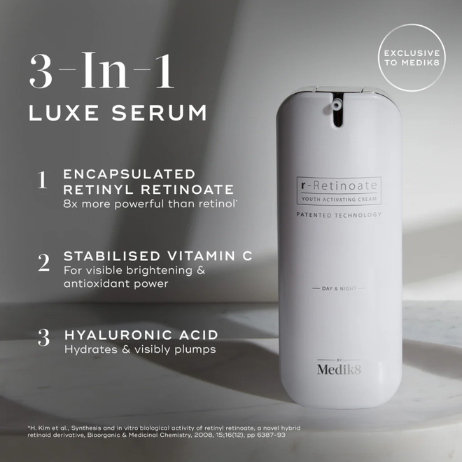 Powered by Medik8-exclusive encapsulated retinyl retinoate, proven to be up to eight times more effective than standard retinol*, the formula works to reduce visible signs of ageing and improve overall skin tone and texture.